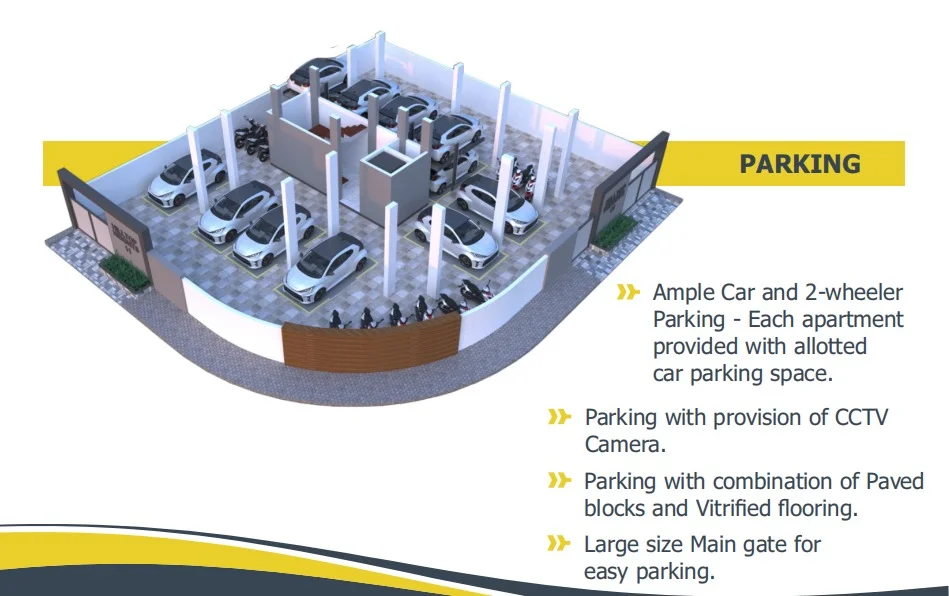 Each apartment at Siddhivinayak Embassy – 10 is designed with premium specifications including a branded lift with power backup, 24×7 CCTV security, video door phone, smart main door lock, false ceiling with LED lighting, spacious balconies, bay window seating, and modular electrical fittings. The project also offers ample car and two-wheeler parking, rainwater harvesting, uninterrupted water supply, and well-planned common areas to ensure a safe and comfortable lifestyle.